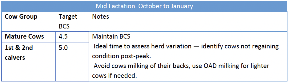 - In the second half of the season, pasture covers and quality may drop—thus energy intake may fall while cows still produce. This can hinder BCS gain.